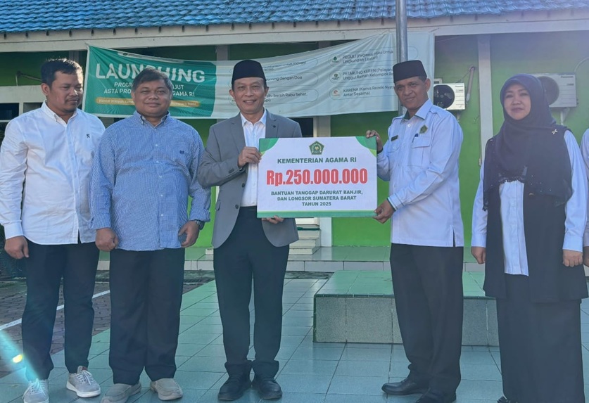 Padang (Kemenag) — Kementerian Agama menyalurkan bantuan kemanusiaan sebesar Rp250 juta untuk masyarakat Sumatera Barat yang terdampak banjir dan longsor. Selain menelan korban jiwa, banjir dan longsor merusak banyak tempat tinggal dan infrastruktur layanan. Bantuan diserahkan Direktur Pendidikan Tinggi Keagamaan Islam, Sahiron, kepada Kepala Kanwil Kemenag Sumatra Barat Mustafa di Padang, Senin (1/12/2025). Hadir juga,…